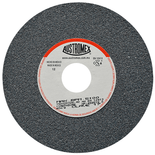 Rueda abrasiva Dimensiones (in): Dimensiones (mm): Abrasivo: Especi cación: Máx. rpm: Línea: Vel. Máxima: 6 “ x 3/4 ” x 1 “ 150 x 20 x 25.4 Óxido de aluminio 11A60N5VA6 5,100 Alto rendimiento 40 m/s